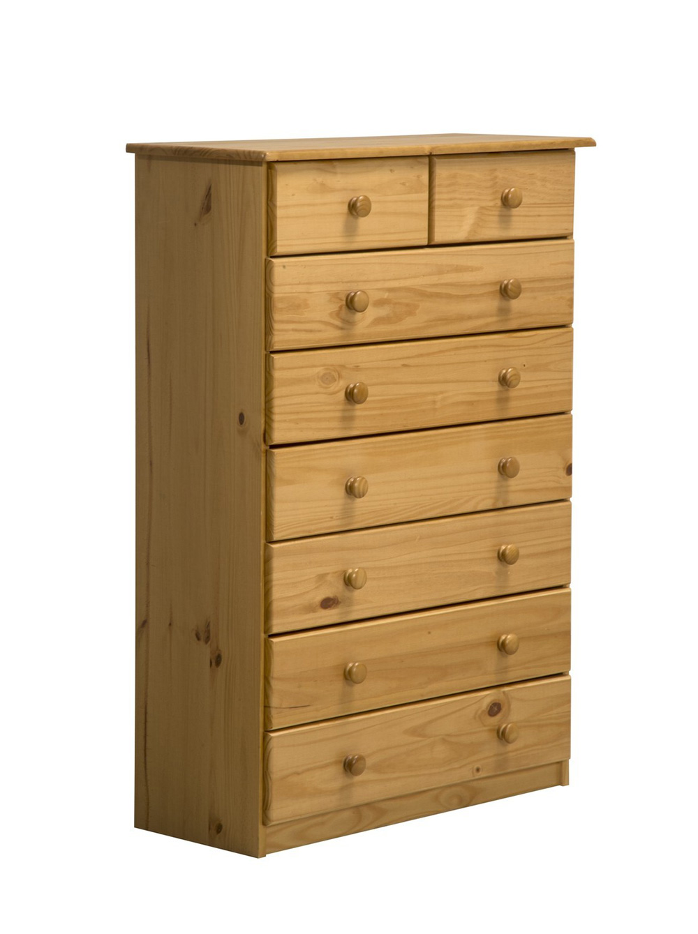 Verona chest of drawers in solid pine. Capacity six large + two small drawers. Colour antique pine finish.